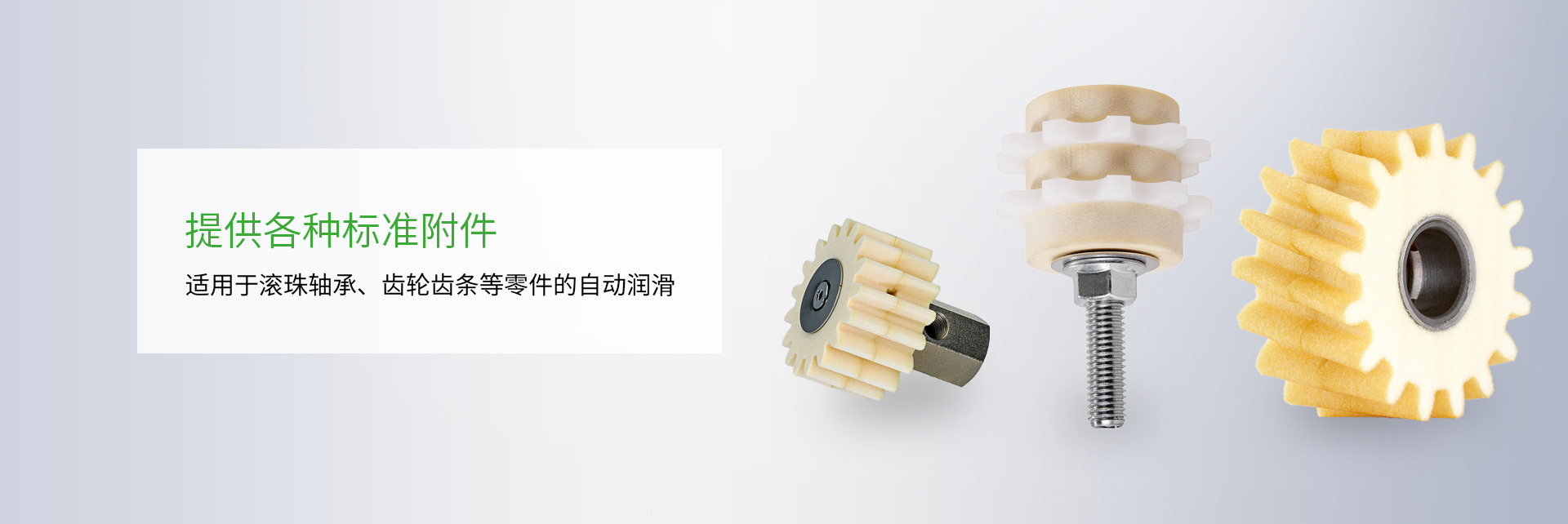 PU润滑轮安装在钢制的中空转轴上,工作时不会传递扭矩,PU泡沫能储存润滑剂,并以非常小的量缓慢释放出来,用于齿条、链条和导轨等零件的润滑。